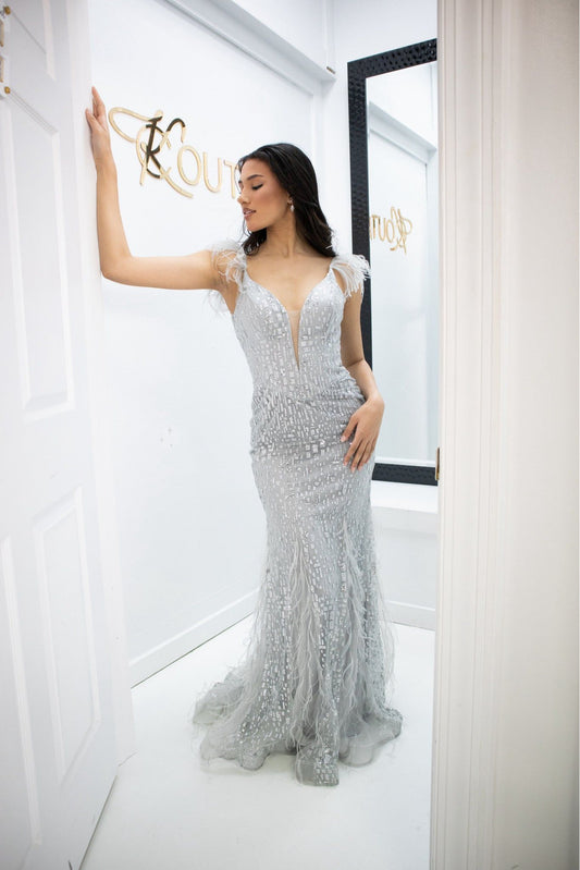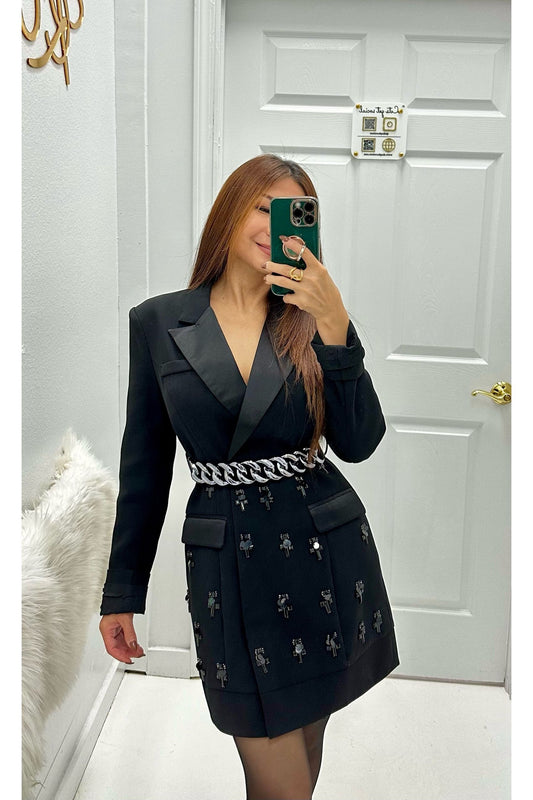Venessa V-Neck Rhinestone Fringe Mini Dress