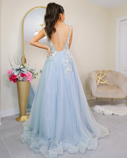 Ever After Feathered Evening Dress