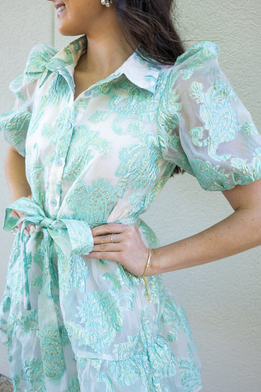 Sold outMint Puff Sleeve Button Down Dress