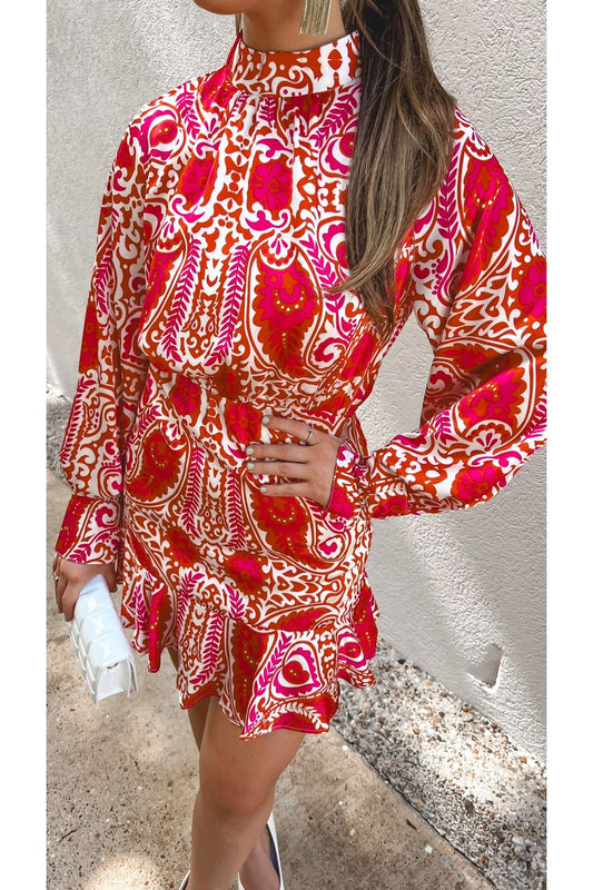 Precious Paisley Print High Neck Dress
