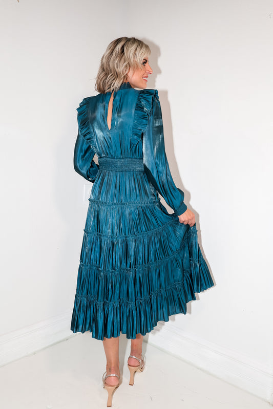 Ashley Aqua Smocked Waist Maxi Dress