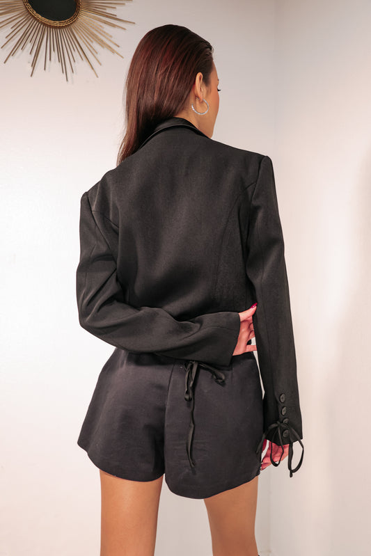 Black Rhinestone Netted Blazer Set