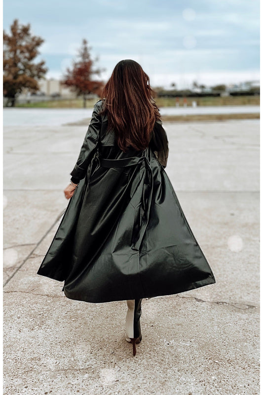 Back In Black Faux Leather Trench Coat