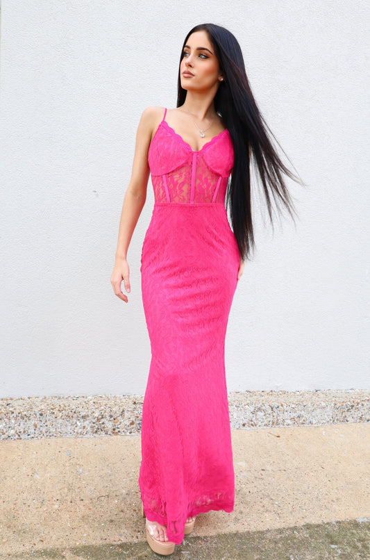Hot Pink Lace Maxi Dress