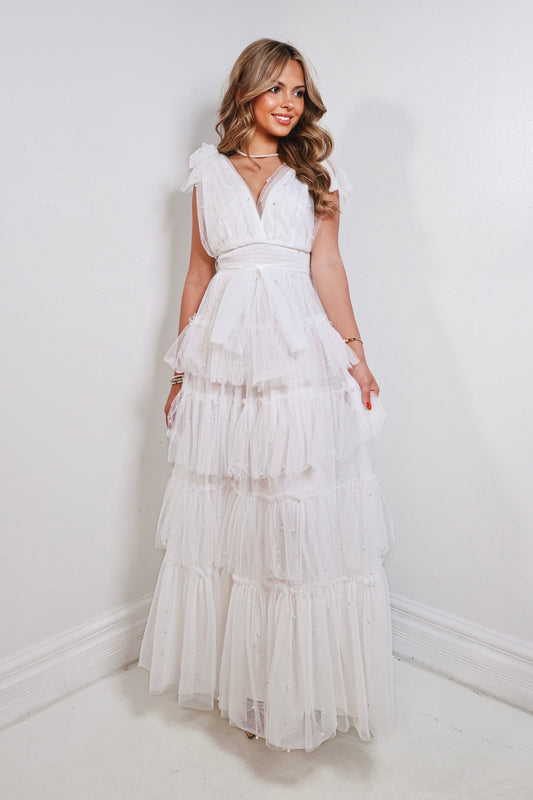 Cloud Nine Pearl Tulle Tiered Maxi Dress