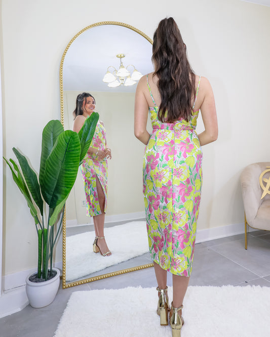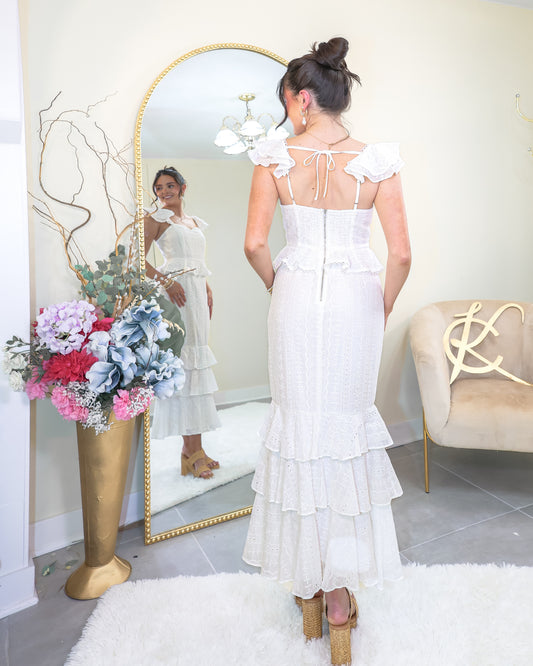 Picturesque Blooms Embroidered Tie-Strap Midi Dress