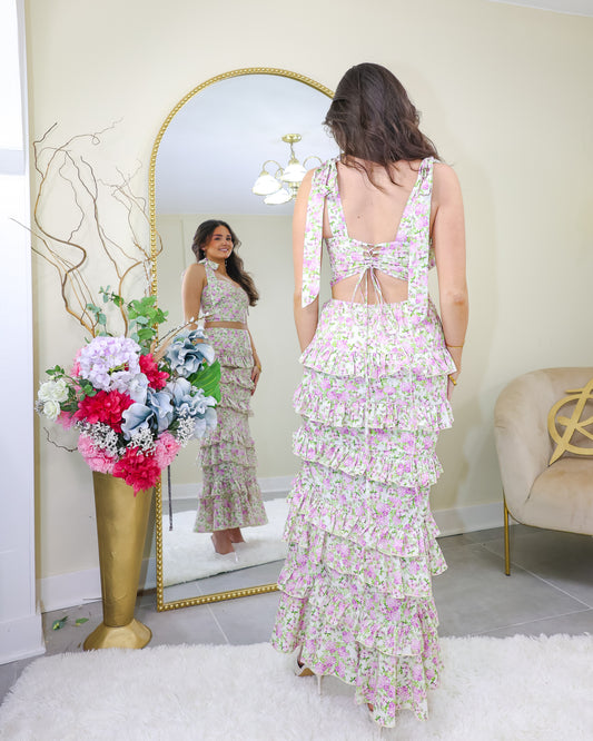 Sunflower Dreams Tiered Ruffle Maxi Skirt Set