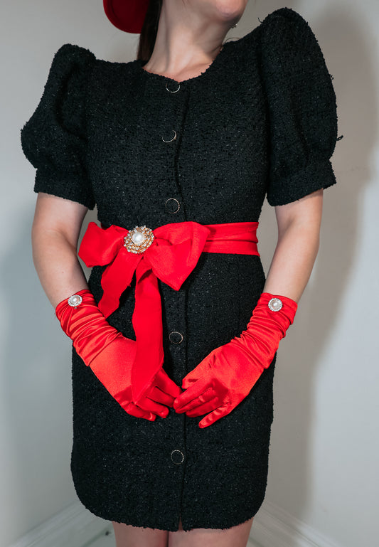 Classic Noir Tweed Puff Sleeve Mini Dress