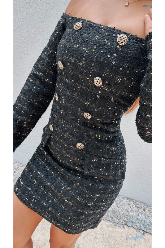 Coco Vibe Off Shoulder Tweed Dress