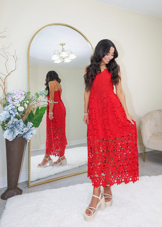 Endless Rose Ruby Red Lace Midi Dress