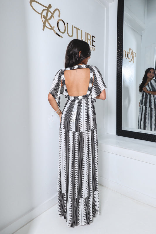 Elan Open Back Ruffle Sleeve Maxi Dress