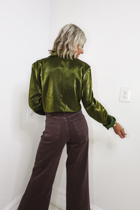 Olive You in Chrome Crop Blazer