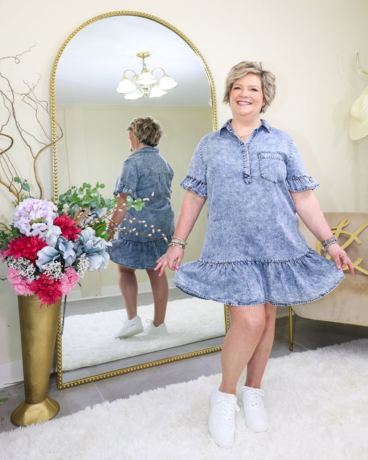 Denim Daze Pleated Mini Dress