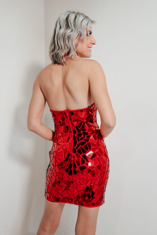 Diva In Red Mirror Embellished Mini Dress