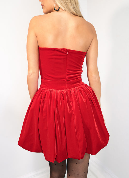 Velvet Charm Balloon Mini Dress