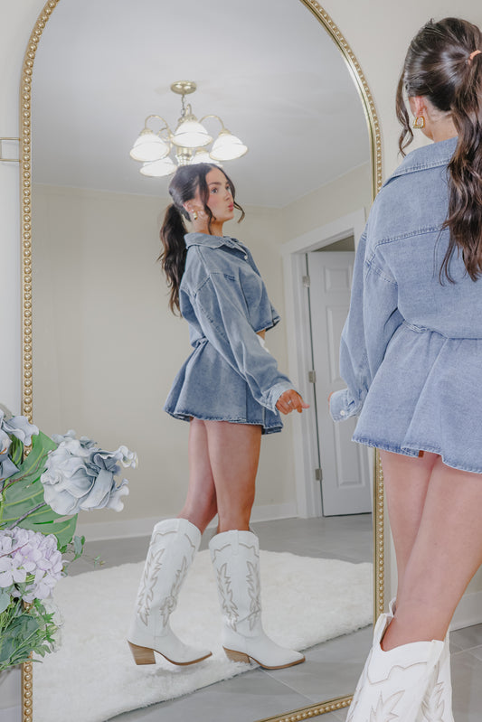 Weekend Blues High Waisted Contrast Skort