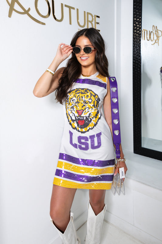 Queen of Sparkles LSU Striped Tank Dress