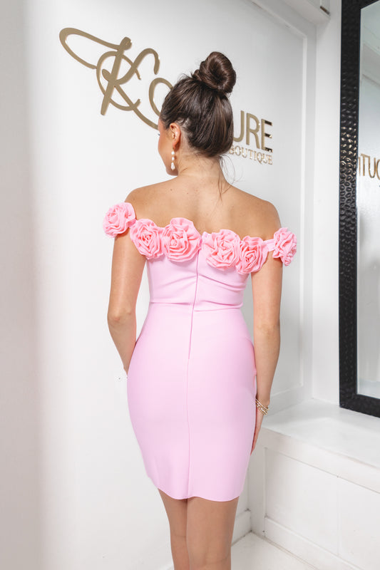 Pretty In Petals Off Shoulder Bandage Dress