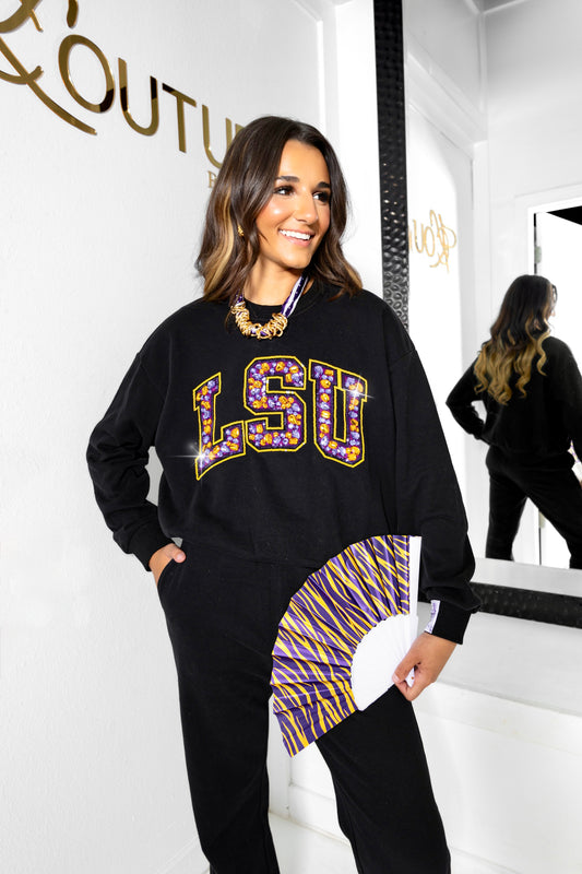Queen of Sparkles LSU Jeweled Sweatshirt
