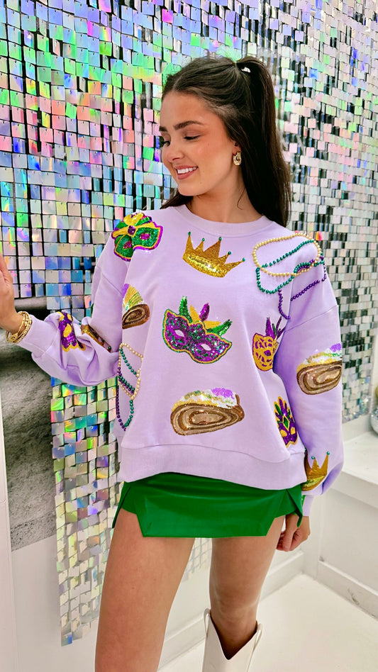 Queen Of Sparkles Lavender Mardi Gras Icon Sweatshirt