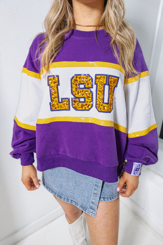 Queen Of Sparkles LSU Color Block Jeweled Sweatshirt
