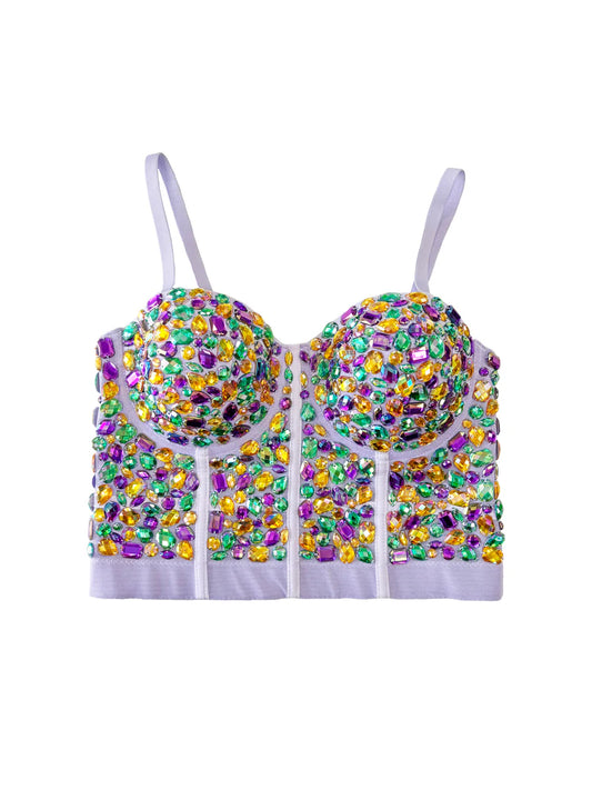 Queen of Sparkles Purple & White Striped Cotton Mardi Gras Icon Top