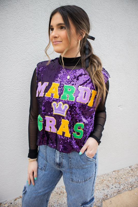 Sold outSequin Mardi Gras Patch Boxy Tank