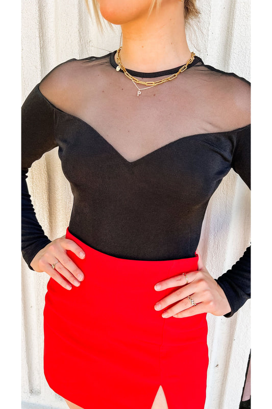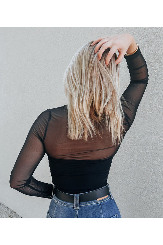 Rylee Ruched Mesh Top w/ Pointed Hem