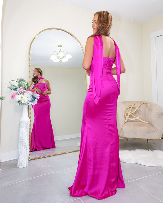 Sold outDraped in Desire Satin Gown