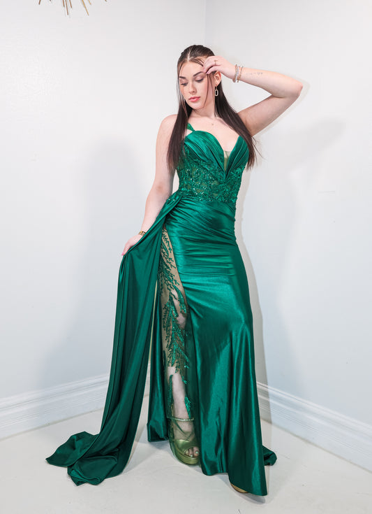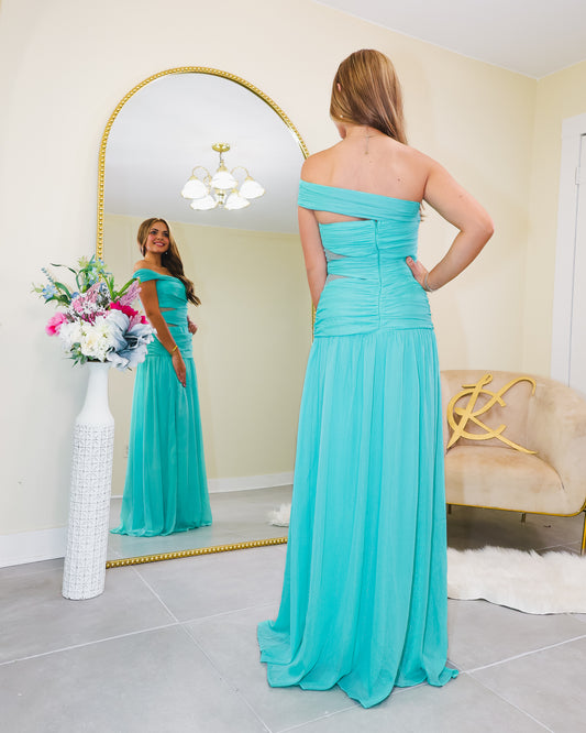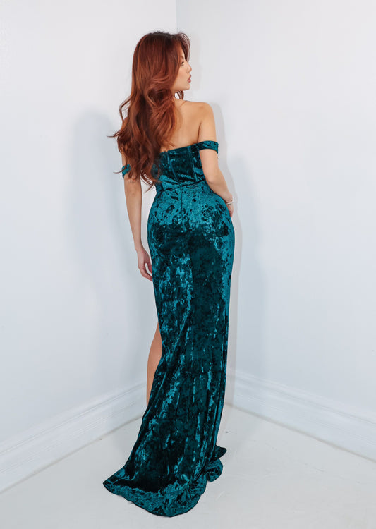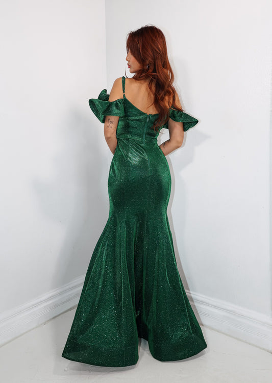Emerald Enchantment Off Shoulder Gown