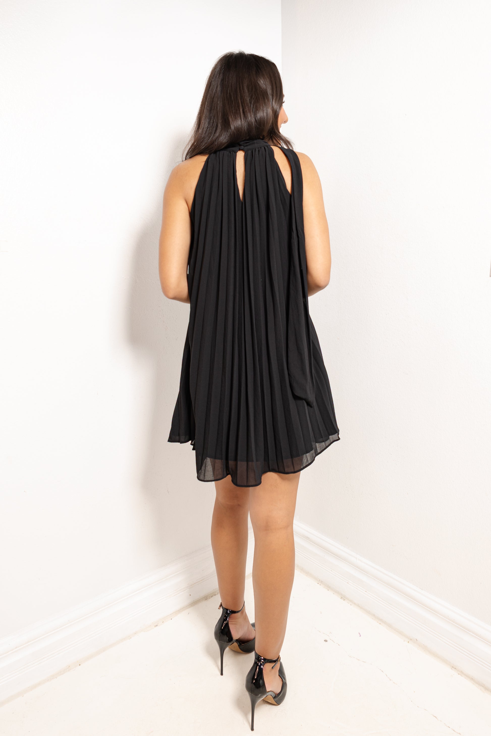 Elevate your style with this chic pleated mini dress, designed with a lightweight flowy silhouette and an elegant scarf neckline detail that can be styled multiple ways. The strapless cut highlights the shoulders, while the accordion pleats add movement and sophistication. Perfect for date nights, cocktail parties, or any event where you want to turn heads.
