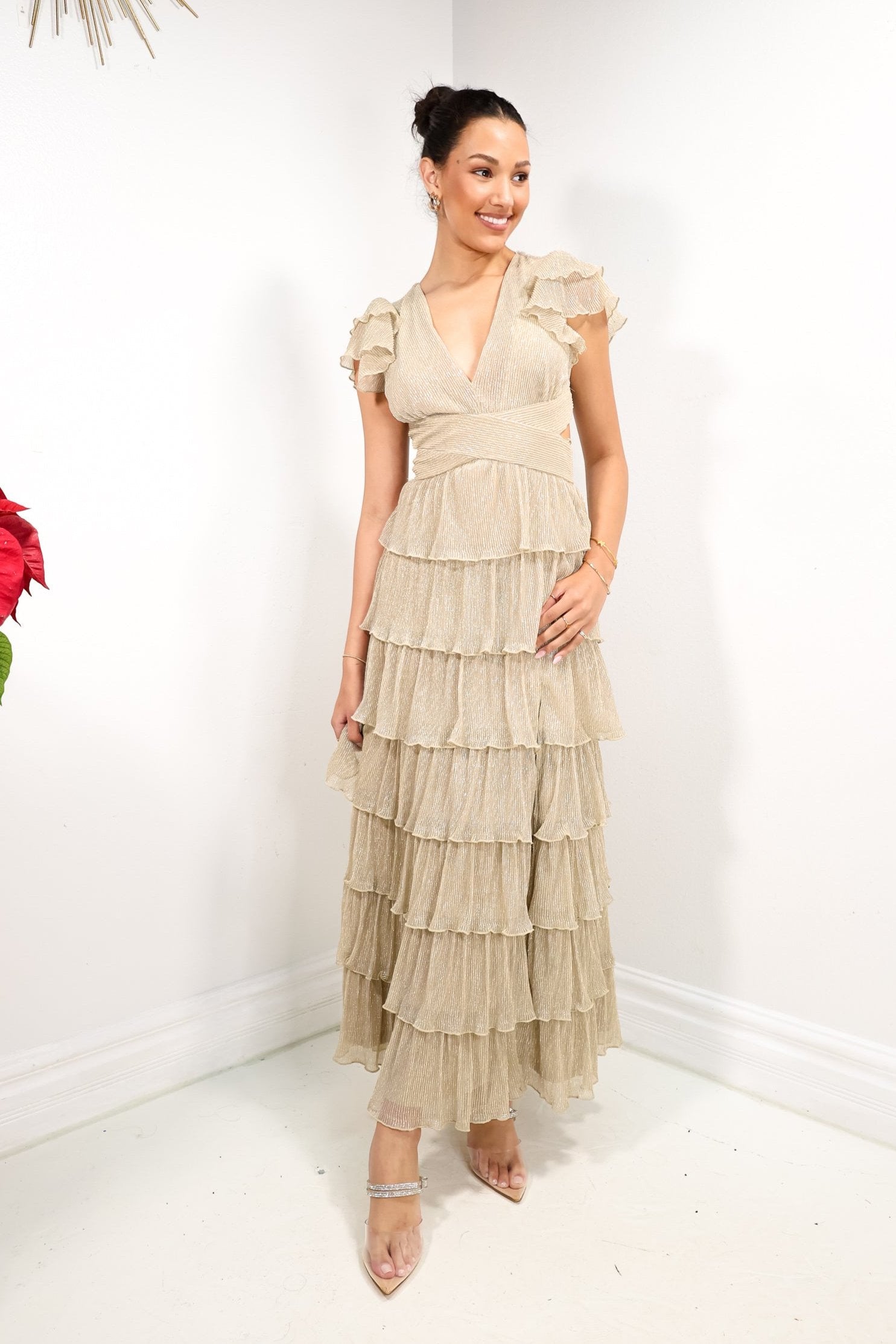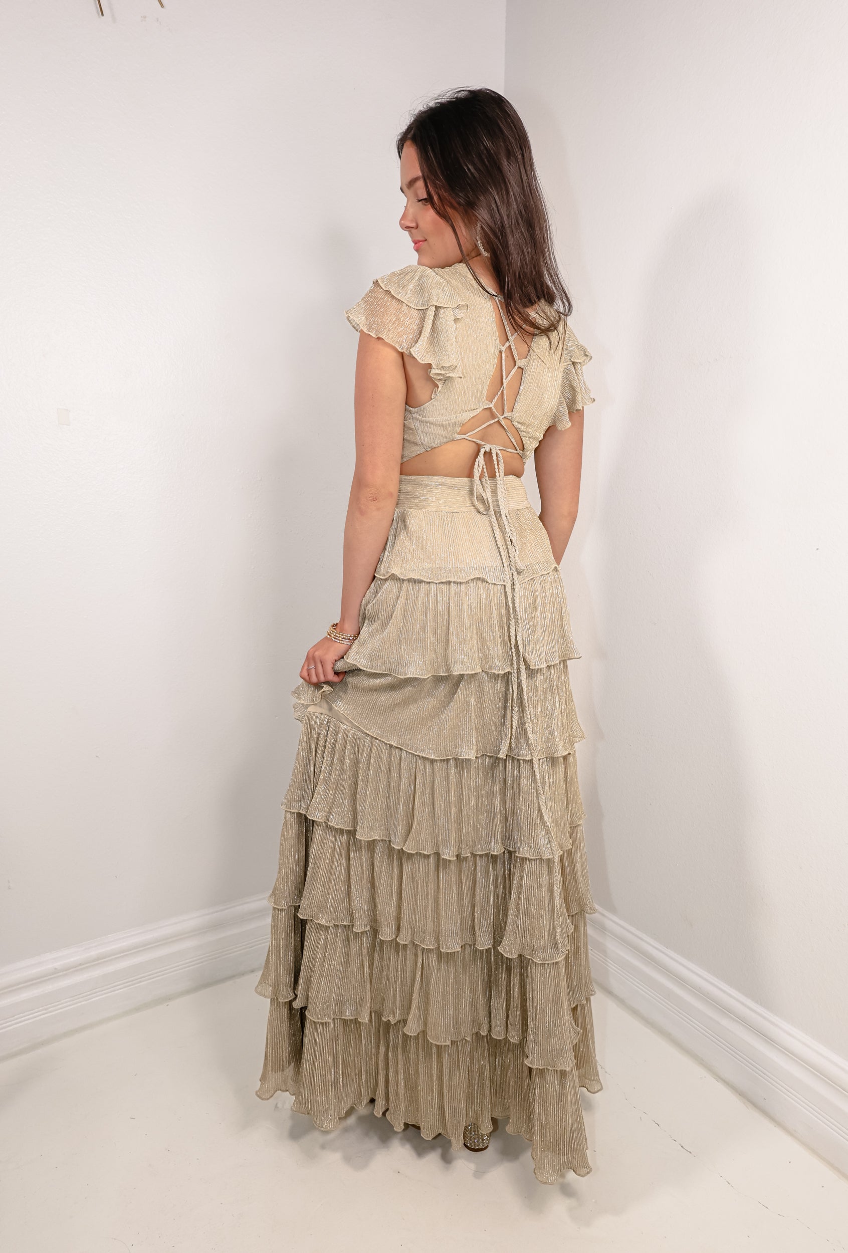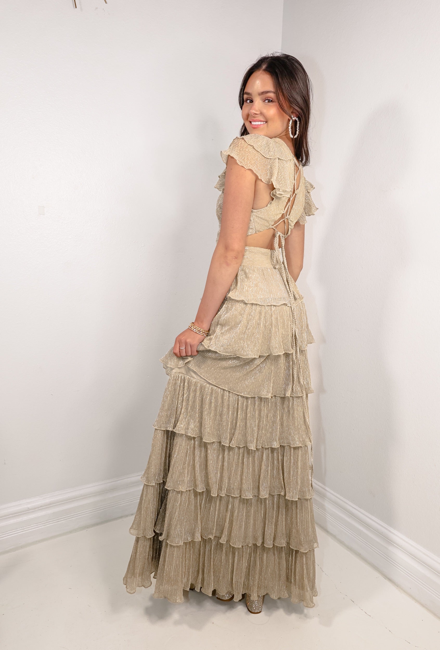 Champagne Pop Pleated Maxi Dress