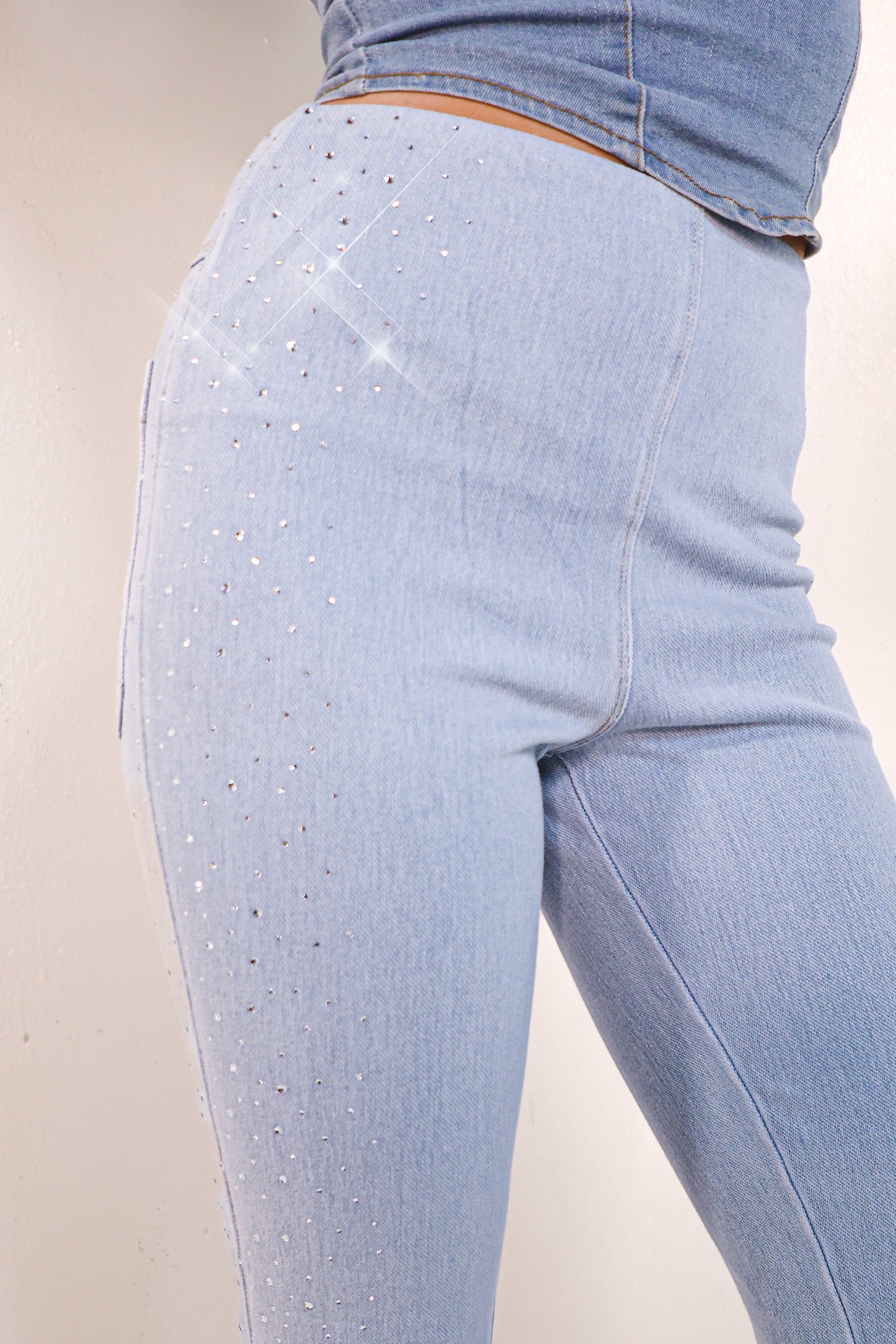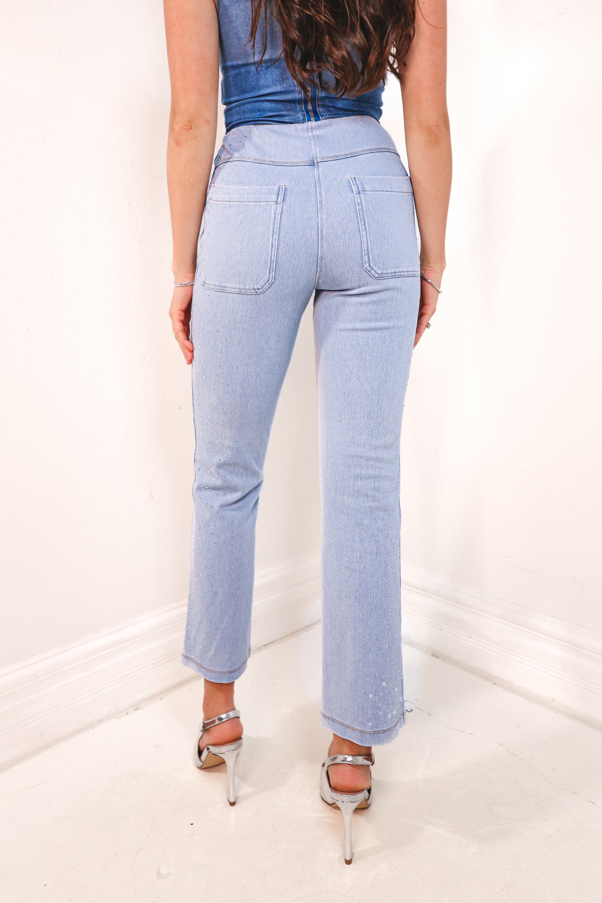 Get ready to shine in Lysse Crystal Embellished Baby Bootcut Jeans! These light wash jeans feature 4 way stretch for ultimate comfort and a trendy baby bootcut fit. But the real showstopper? The dazzling crystal embellishments. Upgrade your denim game with these playful and stylish jeans.