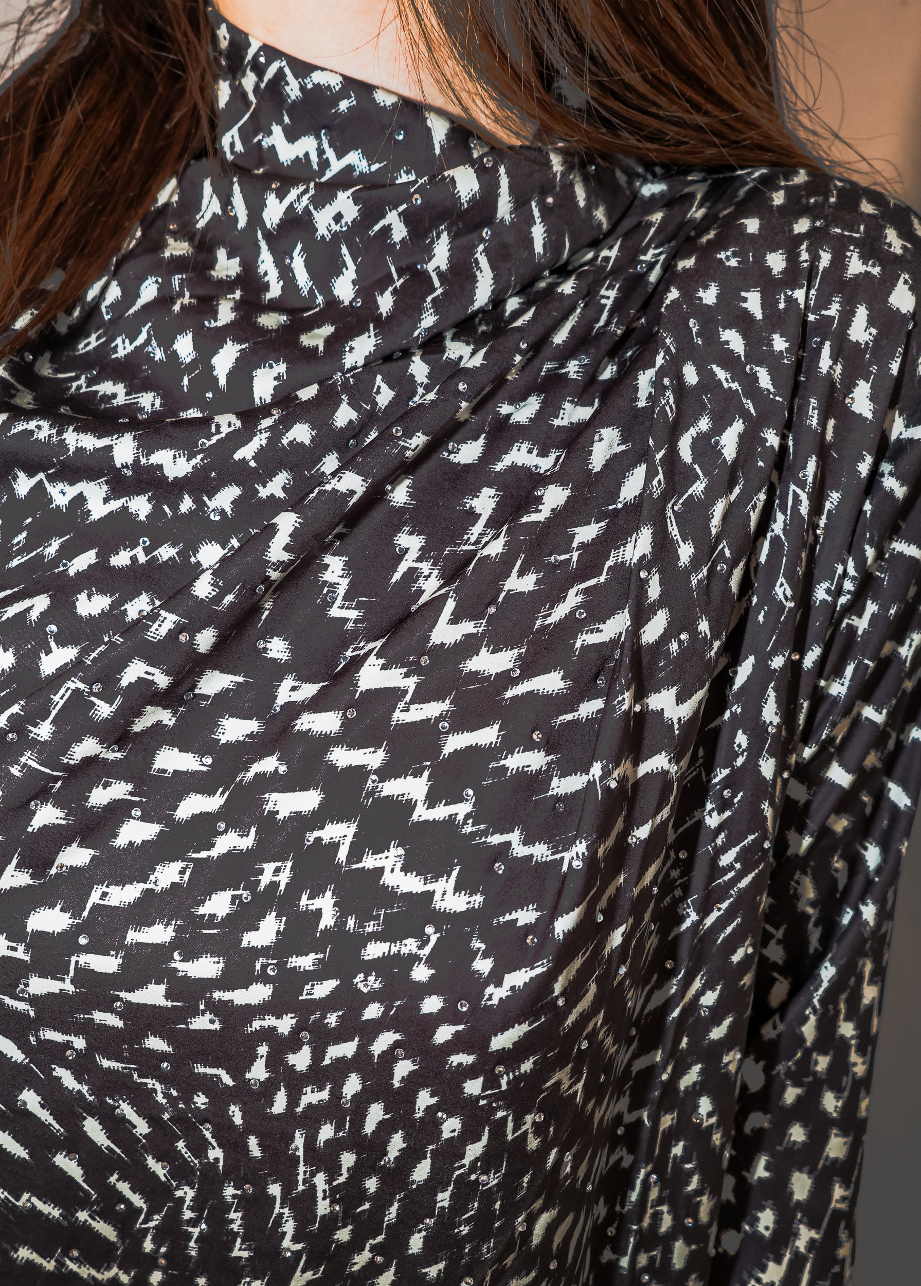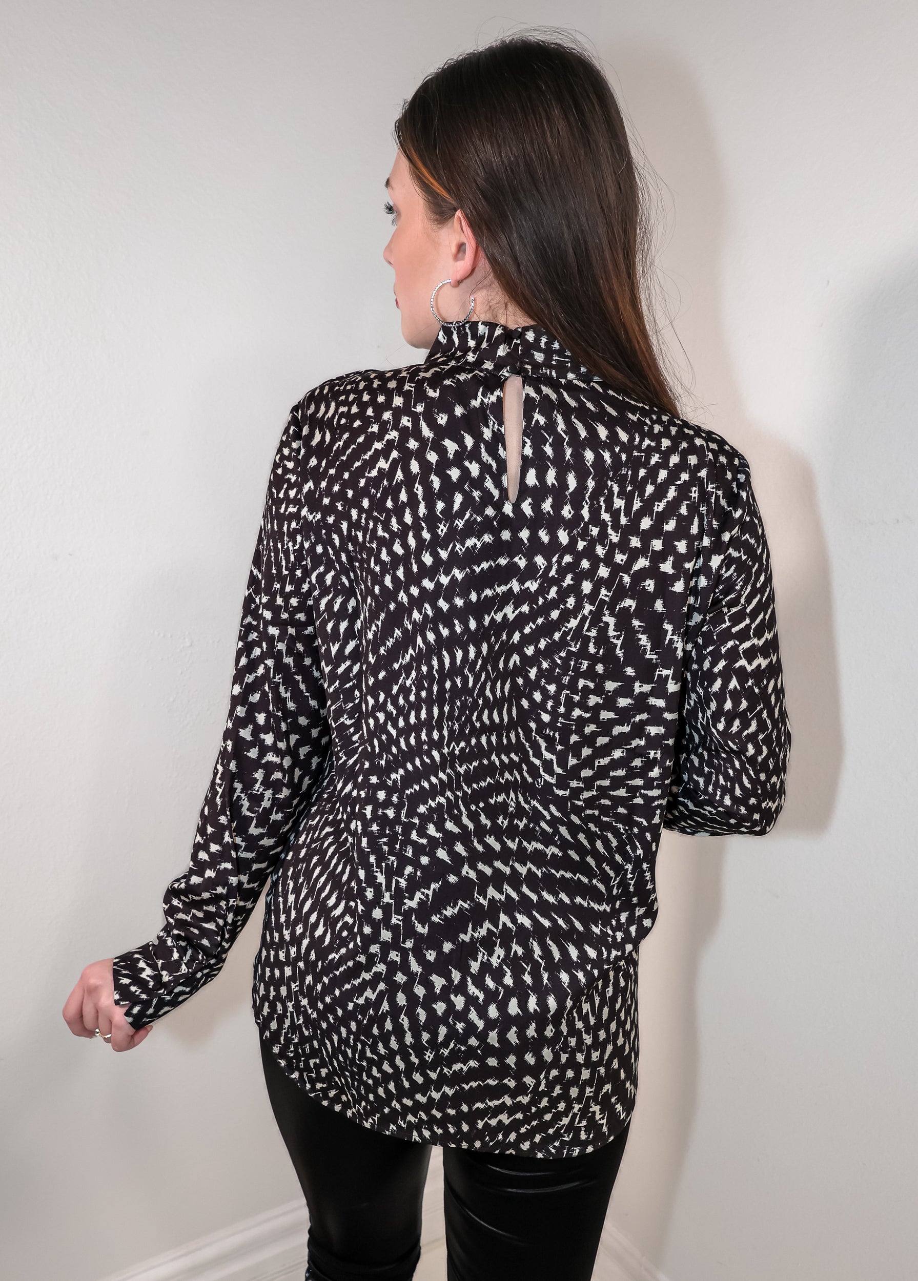 Elevate your style with our Lysse Topacio Embellished Blouse! This stunning black and white blouse features a high neck and shimmering rhinestone embellishments on the front. Perfect for any occasion, the Topacio top adds a touch of elegance and sophistication to any outfit.