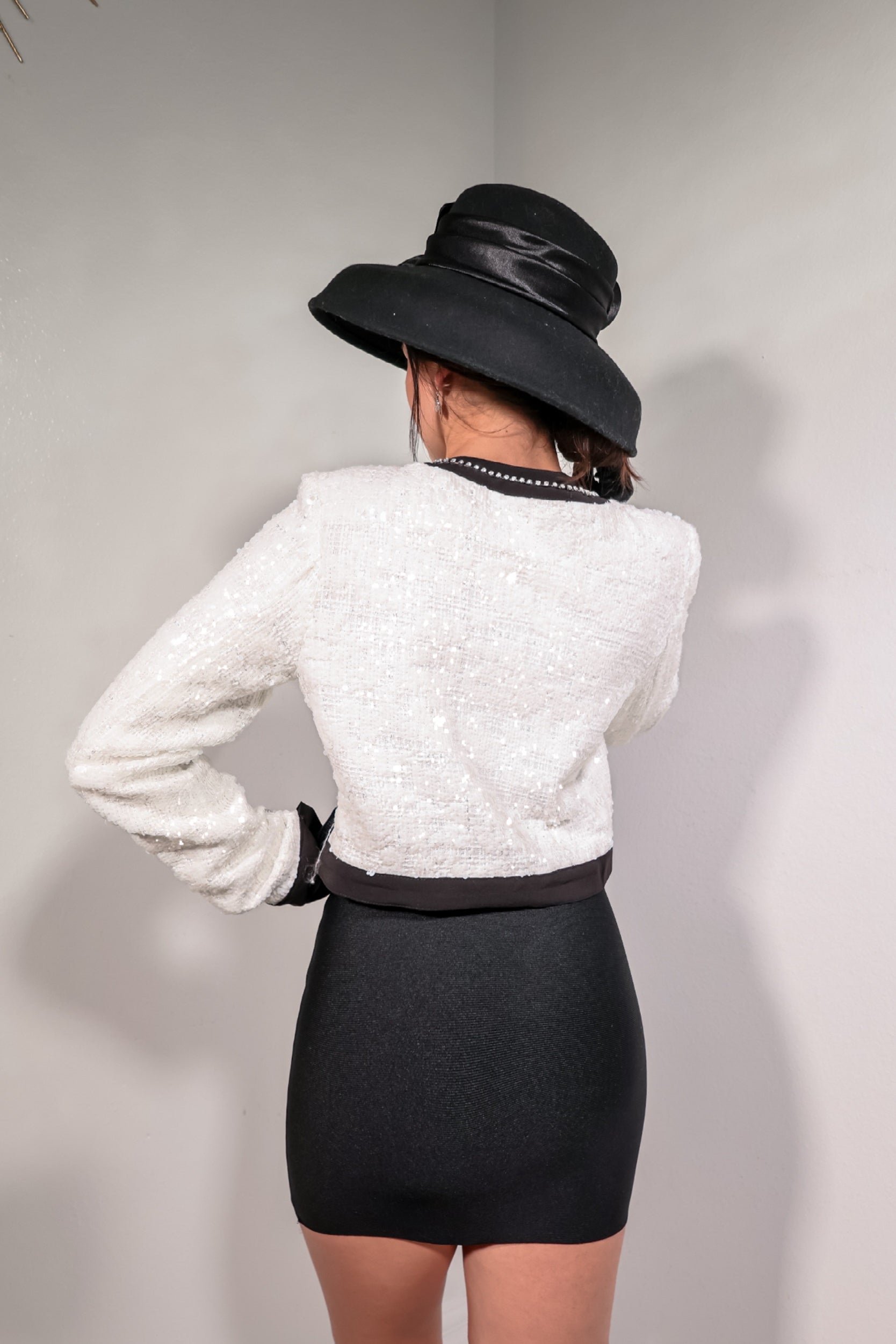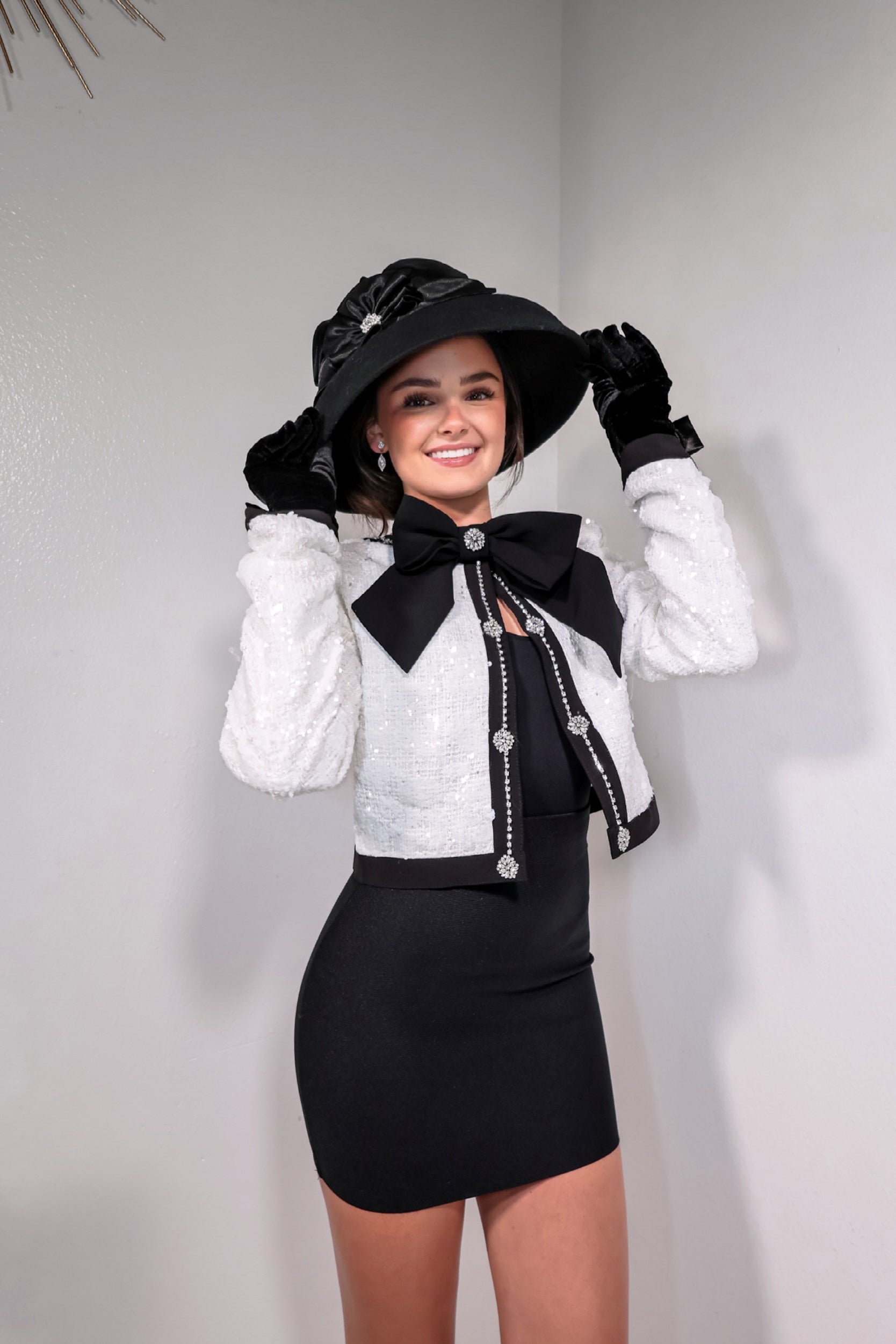 Starlit Sequin Tweed Bow Blazer